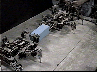 人間の操縦するロボットの作業対象物(箱)を視覚により検出し, 適切な補助動作位置まで補助ロボットが移動する.